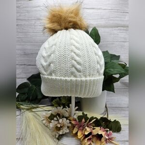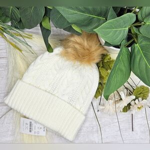 J. Crew nwt cream cable knit tan black pom pom beanie hat will keep you warm and is stylish. Featuring a playful faux fur pom, it's perfect for chilly days. 100% acrylic hat pom pom partial polyester