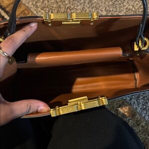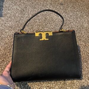 Chic black satchel with iconic gold logo. Ideal for stylish outings.