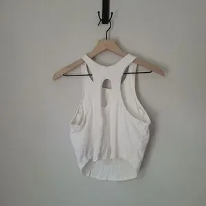 All In Motion Ribbed High Neck Racerback Cropped Tank Top in Cream Size XL