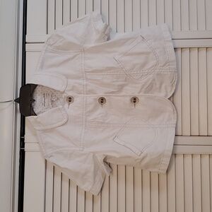 Aeropostale White Short Sleeved Big Button Cotton Jacket, Size Large