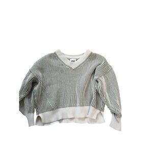 Aerie Womens Oversized Ribbed V-Neck Sweater Sage Green Cream Striped Medium