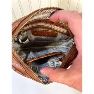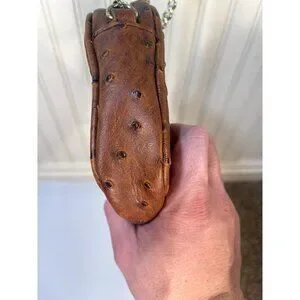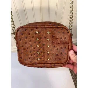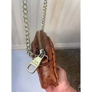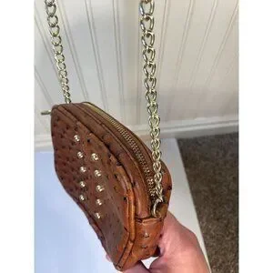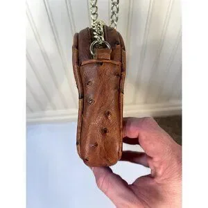 strap is Faux leather embossed in ostrich print with gold chain link.
