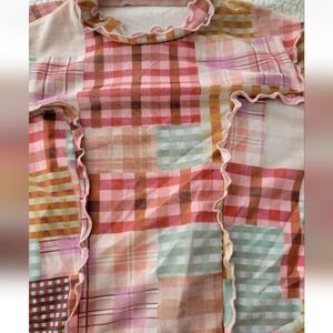 NWT Boho Asymmetrical Patchwork Plaid Mesh Top Fairy Festival Hippie Ruffle L
