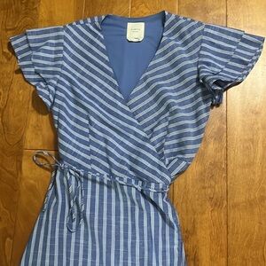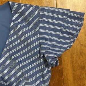 Francesca’s, Vertical stripes, flutter sleeve, wrap, dress, lining, nautical, beach, East Coast, vacation, resort, coastal, coastal, grandma, coastal, cow, girl, school, academia, business, casual, event, brunch