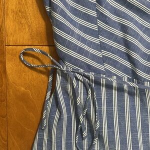 Harper Heritage Blue & White Striped Wrap Dress Size M Nautical Coastal Preppy