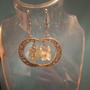 These elegant silver toned filigree earrings feature stunning crystal accents, perfect for adding a touch of sophistication to any outfit.