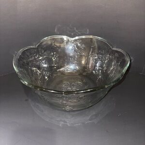 Anchor Hocking Savannah Clear Glass Bowl with a floral embossing and scalloped edges.