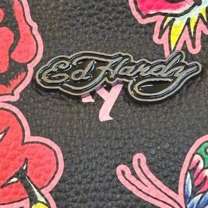 NWT Ed Hardy 22” Black & Pink Skull Floral Shoulder Bag