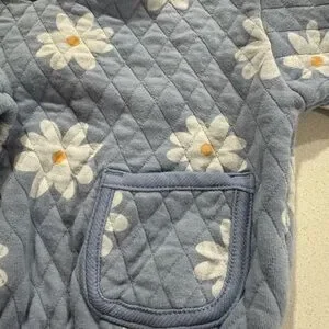 Soft blue quilted top with floral design. Comfortable and cute for your little one! Size 0-3M