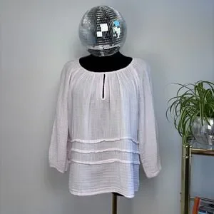 Michael Stars Double Gauze Keyhole Top Bloom Pink Boho Peasant Blouse Medium
