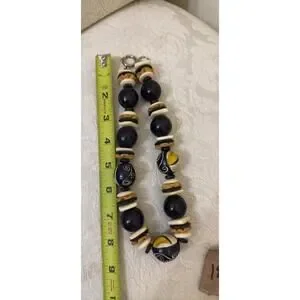 Vintage Chunky Beaded Necklace Black Cream Tribal Boho Statement Artisan Style