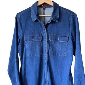 Kut From The Kloth Aly Boho Maxi Denim Dress Button Front Chest & Side Pockets