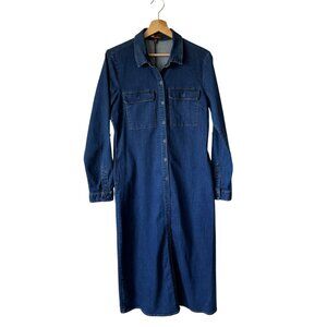 Kut From The Kloth Aly Boho Maxi Denim Dress Button Front Chest Pockets Pockets