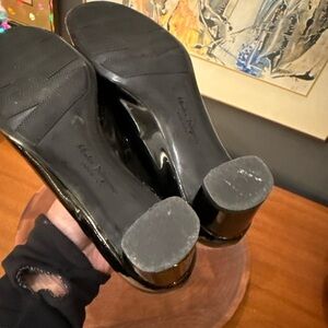 Salvatore Ferragamo Pumps Size 7 6.5? BLK Enamel Leather