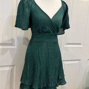 Emerald Green Chiffon Mini Dress Romantic Feminine Dress • Size Small