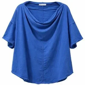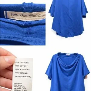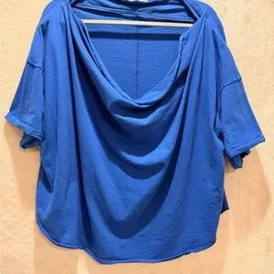 We The Free Cobalt Blue Oversized Cowl Neck Raw Edge Cotton Boho Top
