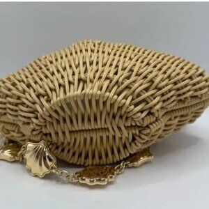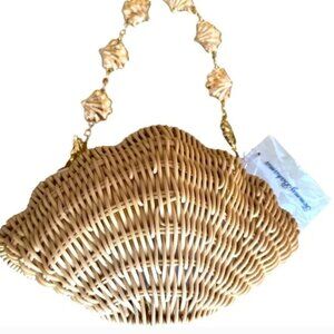 Tommy Bahama Wicker Seashell Clam Shell Handbag with Gold Seashell Strap NWT
