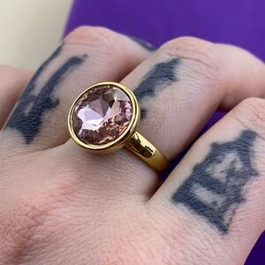 💛 Classic Pilgrim Gold Plated Pink Crystal Ring | Big Solitaire Style