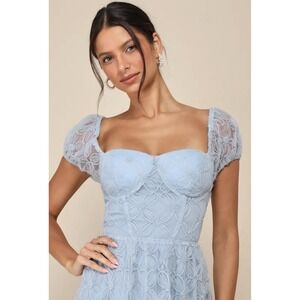 Lulus Exceedingly Elegant Midi Dress Sz Medium Blue Floral Applique Bustier NWT