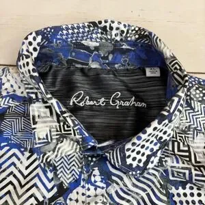 Keywords: Robert Graham, mens shirt, XL, multicolor, geometric, button-up, short sleeve, woven