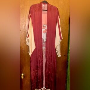 FREE PEOPLE Moon Dance Maxi Kimono Rising Sun Phoenix Silky DusterOS HTF Rare