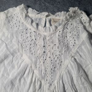 Universal Thread White Eyelet Ruffle Sleeve Top L Boho Flowy Vacation Cottagecore Bohemian Fairycore