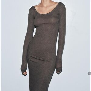 This elegant brown dress features a sleek design with long sleeves, perfect for any occasion. Its rich color adds a touch of sophistication to your wardrobe.