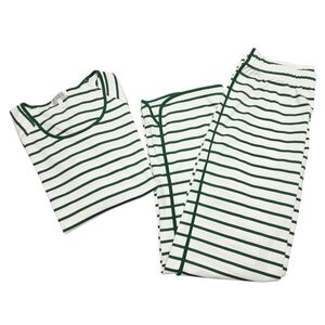 LAKE Pajamas Pima Classic Short Long Set Green White Stripe Size Small