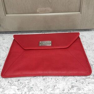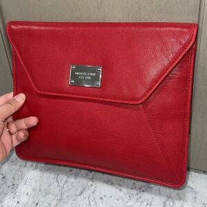 Michael Kors Red Leather Envelope Bag MK Large Clutch AUTHENTIC