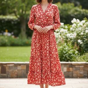 This gorgeous red and white floral piece is the perfect transition dress! Whether you're heading to a garden brunch, a casual wedding, or just want to feel effortless on a weekend out, this tiered midi delivers that perfect boho-chic vibe.