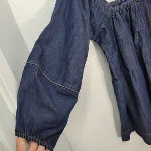 So sweet denim mini dress featured in a babydoll silhouette with puffed sleeves.
