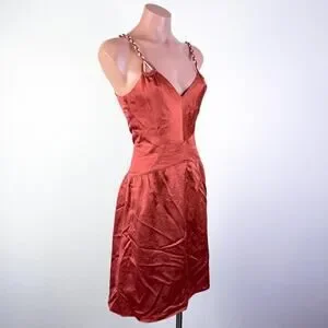 Tags: y2k glam, cocktail attire, boho luxe, rust tones, evening elegance, party ready, vintage inspired, designer style, wedding guest, date night, silk blend, braided details, whimsical, feminine aesthetic, summer soiree, statement piece, rare find, romantic vibes, retro chic autumn fall greek indie cowgirl western gatsby