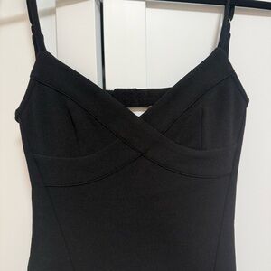 Chic black mini dress with spaghetti straps. Perfect for a night out.