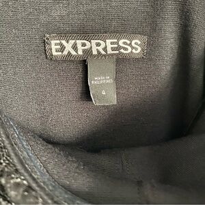 Express strapless, sweetheart black lace dress. Beautifully pleated top with flare waist and zipper back.