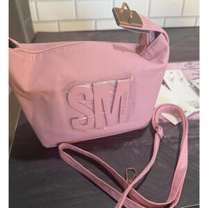 Steve Madden Puffer Bag: Trendy pale pink quilted crossbody with an adjustable strap and embossed "SM" logo. NWOT