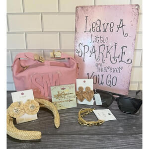 9pc Pink Summer Boho Gift Set: J.Crew Jewelry & Sunglasses, SM Puffer Bag