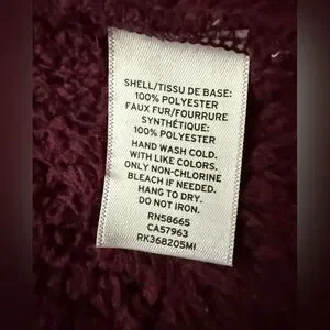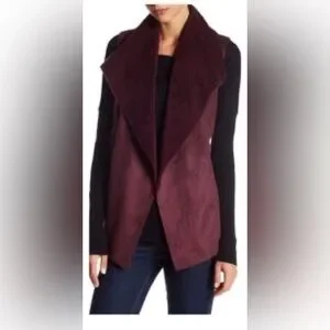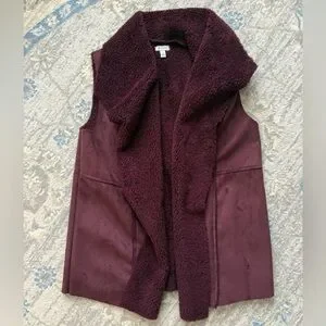 Stay warm and stylish with this burgundy shearling vest. Perfect for layering, it adds a touch of elegance to any outfit.