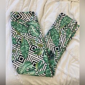 Joseph Ribkoff Tropical Palm Print Stretch Capri Pants Size S