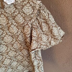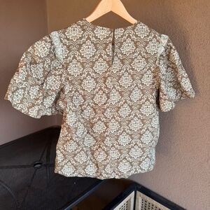 Tuckernuck Hyacinth House Floral Fern Green & Cream Blouse 100% Cotton