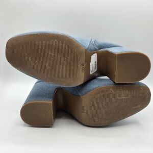 Cato Womens Blue Denim Pearl Studded Scalloped Ankle Booties Block Heel Size 6