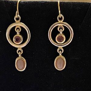 Moon stone and Purple stone in silver and gold tone setting Dangle Earrings