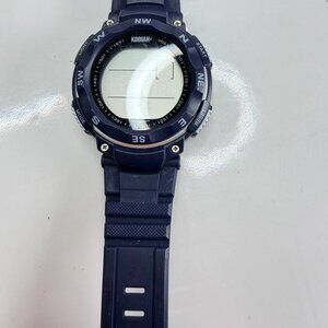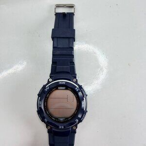 The bold compass-marked bezel (N, S, E, W) gives it a strong outdoor aesthetic. Large digital display ensures clear readability, and WR 100M rating makes it suitable for swimming and active use.