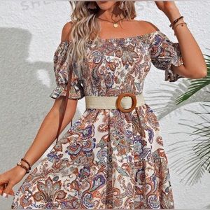 NWOT Audrey floral mini dress on or off shoulder crinkle/smock top