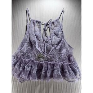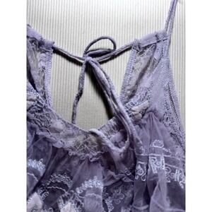 Free People In The Clouds Lace Ruffle Tiered Tank Top Purple Coquette XS NWT