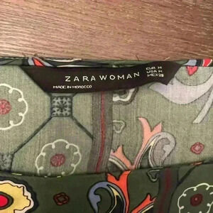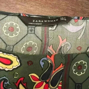 Zara Woman Green Paisley Print Fringe Tunic Dress