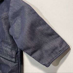 Gap dark denim, shiny finish, double button jacket. Mid-weight, fully lined, thigh length. Lovely details, front pockets & collar. EUC - Like New.