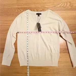 Banana Republic Women's Merino Wool Cream V-Neck Sweater