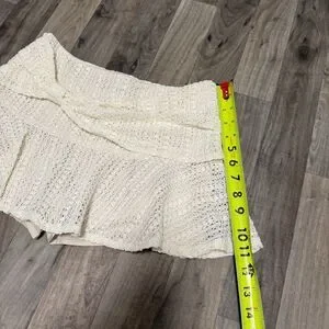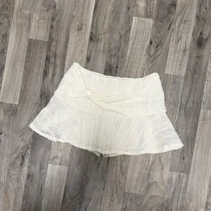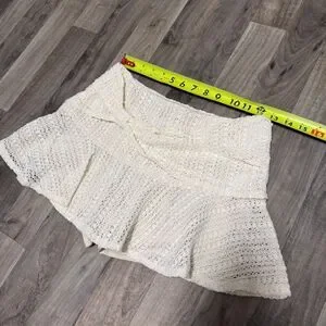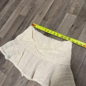 Crochet knit mini ruffled skirt with knot. In excellent condition. With shorts included underneath. Appears to be a size small.