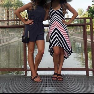 Stylish charcoal sleeveless romper.