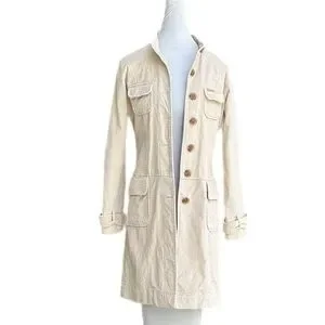 Tommy Jeans Vintage Velvet Trench Coat Khaki Cream Med Cute Great Condition